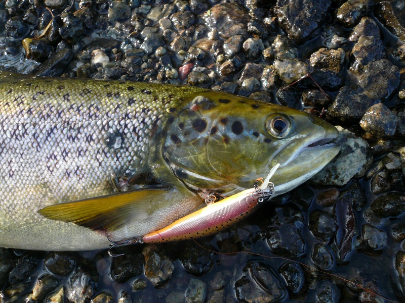 Виктор Валентинович, а горбыль уже потемнел нормально, поотращивал горбы, икра вызрела просто прекрасно, мясо у кого-то уже почти белое, у кого-то красное, 50 на 50, но бой дает еще как надо! В восторге от горбуши в этом сезоне, столько не ловил еще, да и на таком разнообразии водоемов. Вчера штук около 30 поймал, сходов около 20, может и больше. Светлые нет-нет да присядут, истерику закатывают славную. Все ловил на воблеры - Смитовские Пэниш 85, Д-Контакт 85 и 72, Джиб 90. Покосил на тонущие Саурус Тайрекс и Дайвовский Вайз в 70 размере! До железа не дошел. Кстати, был крутой момент в рыбалке - каждые 30-45 минут горбуша меняла предпочтения на игру приманки или цвет. А в обед вообще перестала на апстрим реагировать (а я ее ловлю ТОЛЬКО апстримом), стала брать воблер идущий ПОПЕРЕК течки. Благо опытный напарник решил так попробывать, пока я менял проводки и формы. На классический лососевый снос была поймана только ОДНА горбушка... Еще раз повторюсь - крутая рыба, заставляет постоянно быть в тонусе!