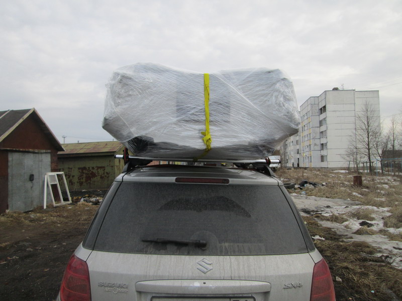 ..а вот одна самое то..54 кг минус банки..получается что то около 50-ти....вдвоём закинули не напрягаясь. Чехол какой-нибудь хочу замутить на неё,чтоб стрейчем не обматывать постоянно для перевозки.