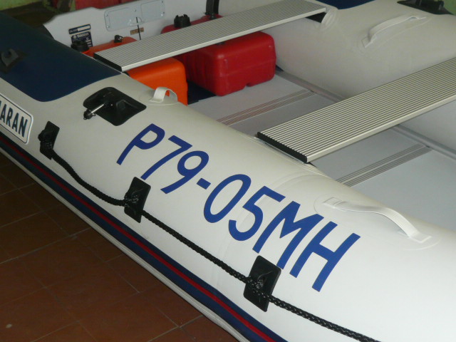 Колян, как вариант сделай на табличках из фанеры и закрепи на леерах. Так вроде теперь можно, да и лодку красить не нужно.