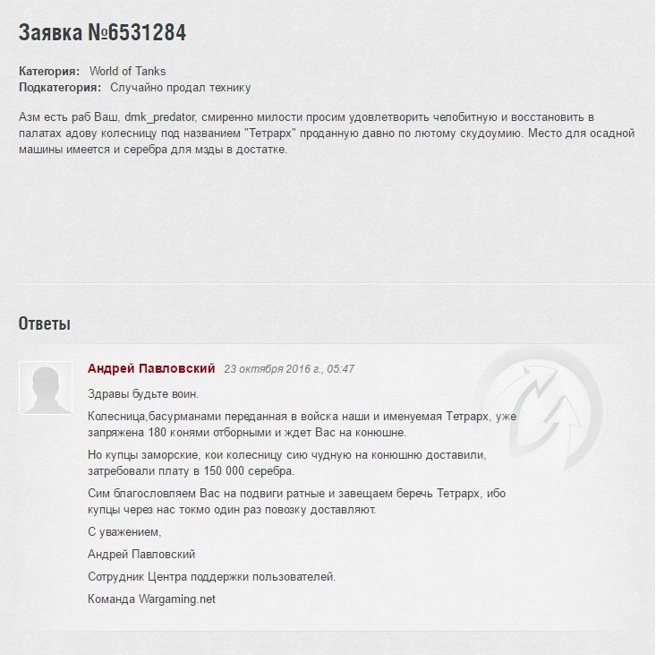 Zerg95 писал(а):Поигрываю иногда. Раньше часто играл - в ангаре 6 топов 10 уровня и за 25 тыщь боёв. Только всегда к этому относился очень по-фигистки. Отсюда и так называемая "стата" - ниже плинтуса. Всегда меня люди которые своей статой кичились очень смешили. Они так серьёзно к этому относяться.. А для меня так - зашёл поиграл в удовольствие - слился хрен с ним - выиграл - приятно, поматюкался - забанили - и так далее. Сейчас по - тихоньку отхожу от этого - поднадоело уже - всё одно и тоже.