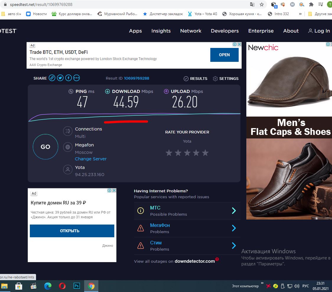 мурманчанин писал(а):купил Ёту модем. пока был рекламные два дня, работал как пулемет. Но как только платил максимальный режим, начались подставы. Перезагрузка задолбала. Только начнешь тексты делать, сразу перезанрузка и все стирает. Общаешься в сети или делаешь ролики, тут же блокирует и перезагружается. И так много раз на день. Скорость упала с 45Мбит на 20-28 Мбит.До 100Мбит ни разу не было, а реклама была. Кто знает, что за хрень?Проблема в связи или модеме? А мегафон никогда не прерывет трансляцию, но ворует Мб