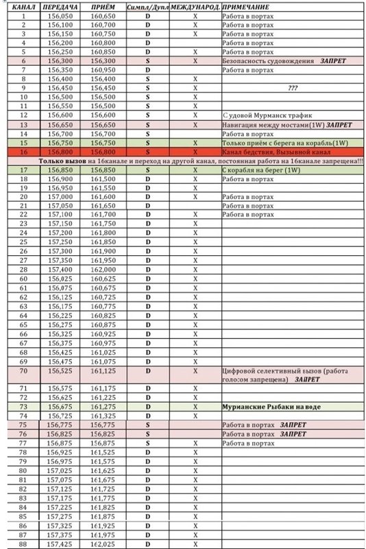 Таблица частот радиостанций морского диапазона