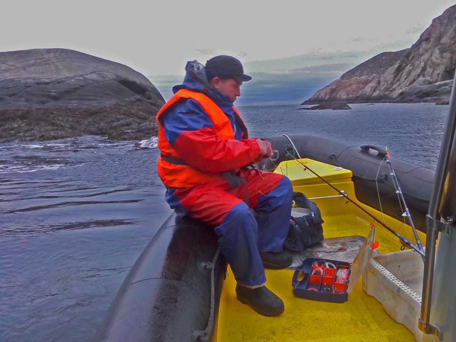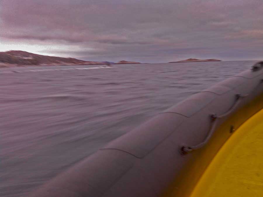 Я реально вижу какие то смутные и непонятные сны… Прихожу в себя только тогда, когда Димон подходит на вытянутую руку. Неделя всё-таки была очень тяжелой…. Димон угощает меня ледяной водой из водопада. Пью медленно, пытаясь согреть, перед тем, как глотнуть. Подходит Сашка, мы залазим в лодку, прикидываем, что делать и по ходу перекусываем. Лодку медленно несёт в море над нереальной песчаной отмелью. Глубина полтора метра, видна каждая песчинка.. Сашка менжуется, куда идти.. Я его понимаю и беру инициативу на себя: - Я выведу на рыбу, не очкуй. Сашка понимает, что я не шучу. Димон острит по поводу моих талантов, но вежливо. Я уверен в себе, перед уходом с точки я взял пеленги по береговым ориентирам. На том и порешили. Сашка ведёт медленно, постоянно оглядываясь на меня. Прикинув поправку на снос по ветру, я просто показываю рукой: - Здесь. - Димон демонстративно закидывает пунду. Сашка распутывает трескодёр нарочито медленно. Димон констатирует: - Клюёт, сука! - Тут уж все закидывают всё. Рыба конечно помельче, чем на первой точке, но это явление временное. Несёт нас в нужном направлении, на глубину. Мы помалу начинаем валить рыбу во второй стамп, из первого она уже просто вываливается.. Попадается мелкая пикшина, Димон вытаскивает окуня. Мы с Сашкой пытаемся его развести – мол, ядовитый и несъедобный, но он гад не ведётся и прячет окуня на всякий случай в ближний к нему стамп. За рыбалкой мы не замечаем усиления ветра. Сашка первым сматывает удочку и разбирает снасточку. Я вспоминаю – да, на вечер усиление. Ну что ж, всё хорошее когда ни будь кончается, только дерьмо вечно.. Укладываем по - походному всё барахло, перекладываем рыбу, пакуемся и засупониваемся. Я выговариваю Навигатору про движение в запредельных режимах. Успокоившийся к вечеру Сашка вяло отбрыкивается, но сектор газа до упора не задвигает. Лодка идёт ровно и уверенно. За Летинским нас встречает бодрый Юго – Запад. Сопли со слезами занимают своё штатное положение..
