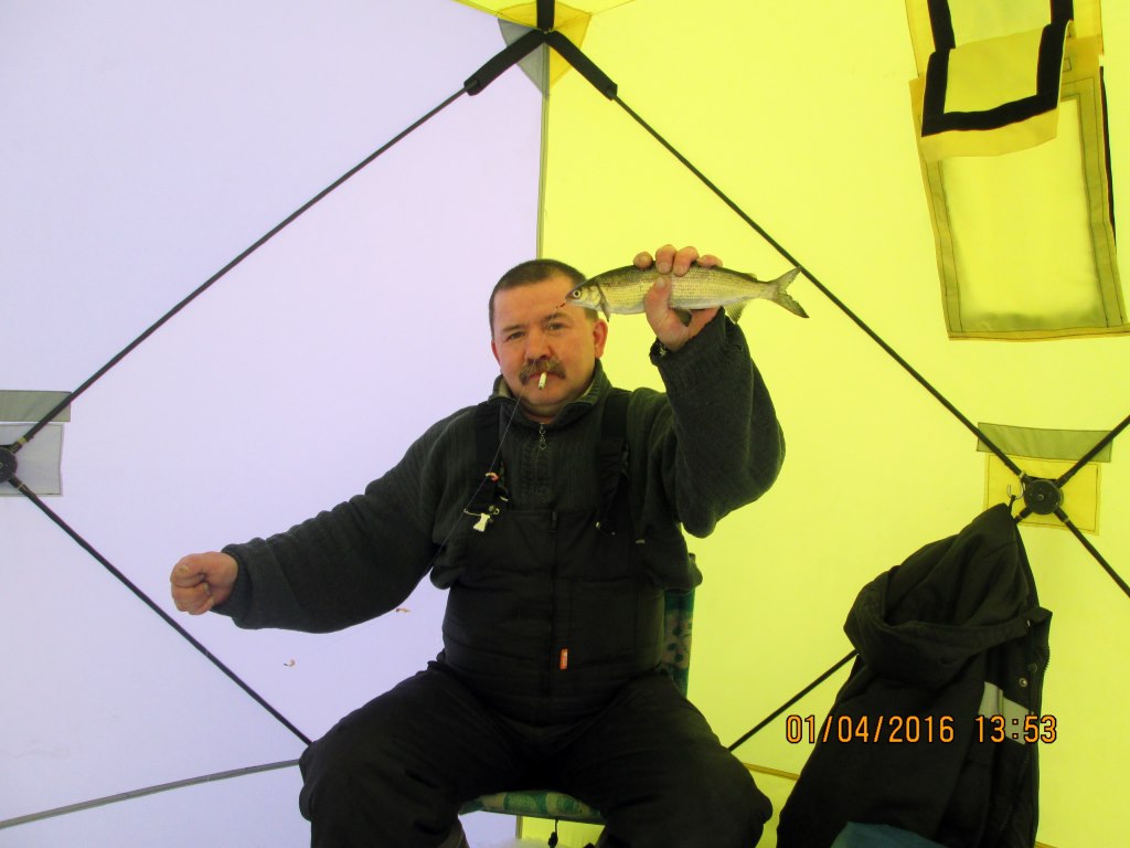 Сели опять на свое место, метров на 200-300 от всех. С утра, с 10, как-то не очень поклевывало. После обеда мне стало скучно в палатке, и я пробурилась на улице. Сразу подряд 4 корюшки! Слышу, в палатке Сережка матерится:"Опять сошел!!!" :wo)(ll: И у меня тут же мощный тычок!!! :sh_ok: Поймала грамм на 400 сига, мой вопль, наверно, вся Имандра слышала:"А я твоего вытащила!!!!" :ya_hoo_oo: Потом сразу еще, но неразмерного: плыви за мамой-папой!