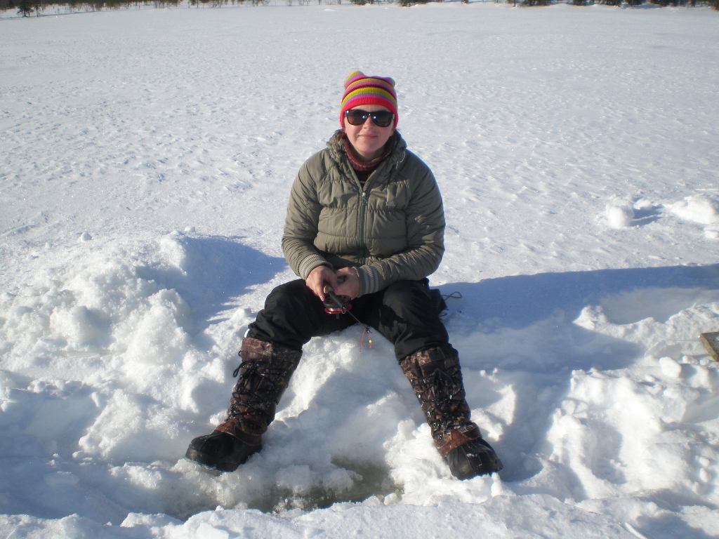 . Быстро погрузив все вещи и себя в сани мы отправились к намеченной цели. После часа езды я оказалась в зимней сказке!!! Погодка 2 дня стояла солнечная и безветренная!!! Быстро перекусив и взяв в руки ледобур я отправилась греться на солнышке возле лунки. Через полчаса, пригревшись под лучами, сон срубил рыбачку прям на месте лова
