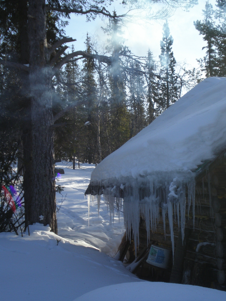 Побеседовав пару часиков, раскочегарив печку, мы легли спать... Ночью к нам в гости заходил лесной воришка, которого я так и не смогла вычислить, только слышен был шелест пакетов...