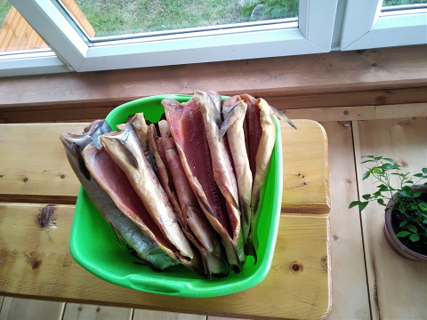 А мы коптим горячего и холодного копчения,вялим,морозим. Едим кулебяки,жарим,запекаем,.....