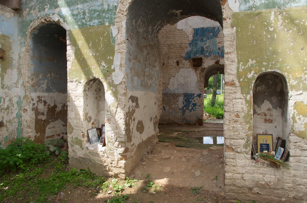 побродил по Церкви. Стены двойные, с ходами. люди сюда приносят свечи, иконы.. Дай, Бог, чтоб эта красота была восстановлена..