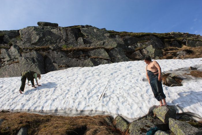 Созвонившись в очередной раз с Мэри и Андреем,а они в свою очередь с ЕвГеном,мы назначили дату поездки в ДЗ на 7 июля 2011года...И вот,тот день настал...Поняв,что мы окончательно собраны,выдвинулись в путь...Было солнечно и тепло..За лёгким разговором,с приподнятым настроением,с короткими остановками у дорожных речушек,мы незаметно добрались до отворотки на Туманный.Позвонив Евгению и уточнив дорогу,о которой он,посмеиваясь, тут же стал говорить как о длительном пути в четыре час,немного притихнув,мы поехали дальше...Как часто в России можно встретить именно то,что называют только напрвлением!! Дорога представляла собой каменистый грунт с выступающими валунами!!..Подъезжая ближе к побережью,мы бурно обсуждали те красоты,которые нам открывались!!!..Как всё же прекрасна тундра с её далями,озёрами реками и растительностью!!!..Аккуратно,мелкими шажками мы всё же доехали до пункта назначения....Евгений Генрихович встретил нас у подъезда своего дома..Решено было в первый вечер посидеть с шашлычками и разговорами, на утро собираться в поход..Так мы и сделали...О чём фотоотчёт прилагаю..И огромное спасибо Евгению Генриховичу,замечательному учёному,собеседнику,да и просто чудесному человеку!!!.А так же его неутомимому и верному соратнику Джо.