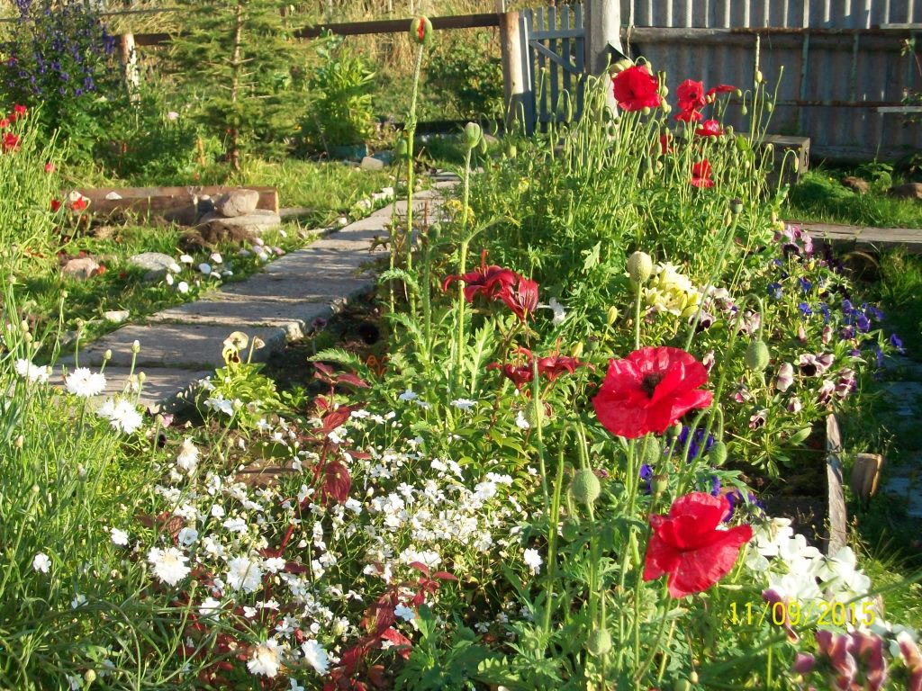 Красота! КАЮр писал(а):Там же, но пораньше чуток. Супруга брата половину огорода цветами засадила. В ущерб овощным культурам.