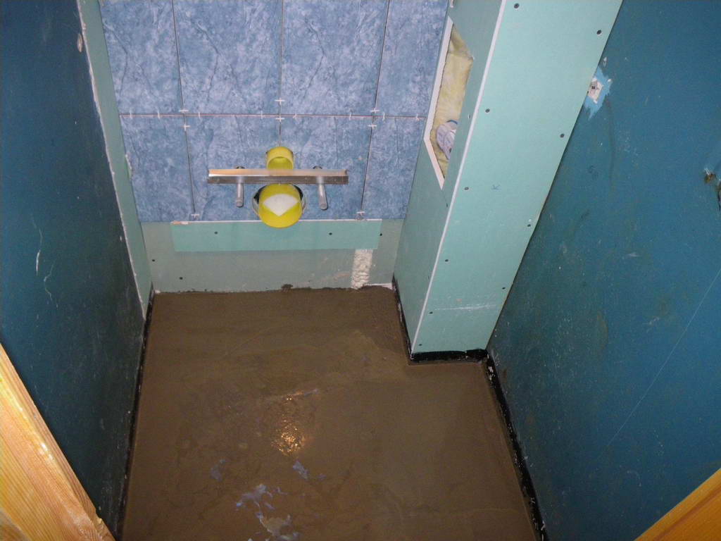 а вот туалет.. инсталяция сделана из гипрока.. часть плитки на гипроке, а часть по покраске.. не помню.. но вроде бетонконтакта не было в туалете..