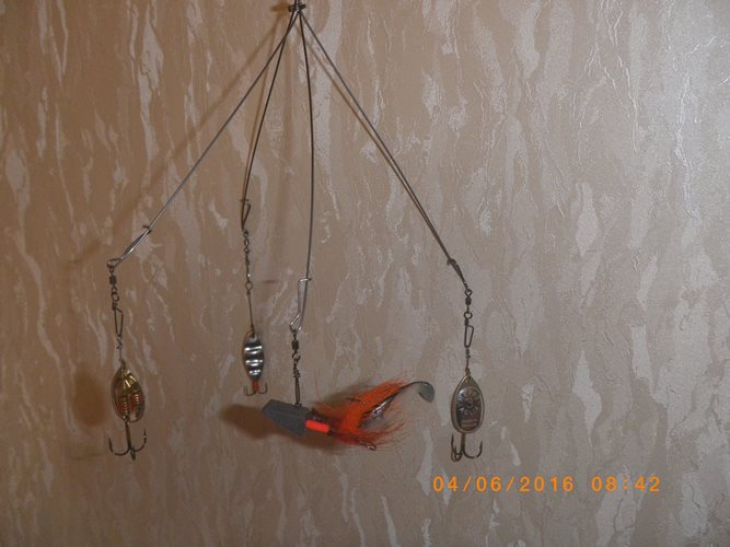 litoral писал(а):Для экспериментов по определению клёвых приманок предлагаю использовать"зонтики". Они позволяют одновременно испытать несколько различных приманок и насадок и главное, определить на каком горизонте от дна держится стая. Достаточно прикрепить пунду к центральной спице обычного "зонтика", чтобы обеспечить быстрый спуск снасти с разными приманками на заданную глубину.