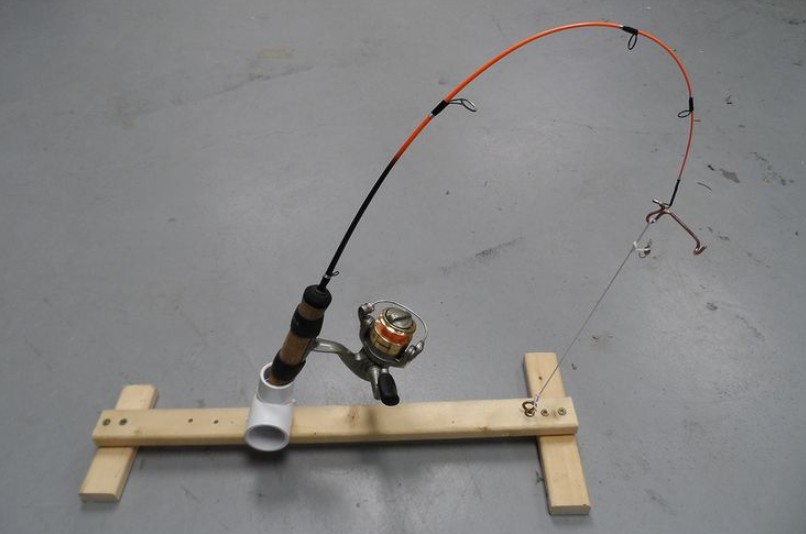 Очень просто, разборная, можно регулировать длину установки, жёсткости подсечки, отодвигая или придвигая спиральный держатель спиннинга.