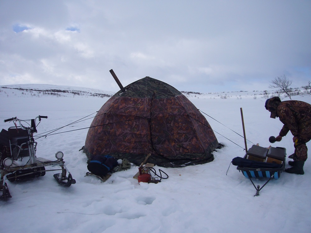 [/quote]Игорь Б. писал(а):bigfatfish писал(а):Палатка УП-2 своих денег стоит. В одно лицо и с печкой в этой палатке шикарно, вдвоем уже не очень. Прошлый сезон в апреле прожили в такой палатке неделю вдвоем, но при этом одному пришлось жить в тамбуре, т.к. если ставить две раскладушки, то вместе с печкой места остается очень немного и вторую раскладушку необходимо днем собирать. Штатная печка большая "экономка", с ней можно вполне комфортно ночевать, большой плюс что можно просушить одежду и обувь. В тундру вместе с ней не ездил, поэтому не могу сказать как она на ветру, но конструкция в общем то достаточно надежная и простая. Ставить палатку одно удовольствие, очень быстро и просто даже в одиночку, главное место от снега очистить. Если печка работает в экономном режиме, то ее необходимо чистить каждый день, очень сильно зарастает, зато почти всю ночь пыхтит потихоньку. На льду в ней ночевал только один раз и в качестве обогрева использовал газ, как было бы с печкой в этом случае - не знаю, наверное к утру пришлось бы плавать.