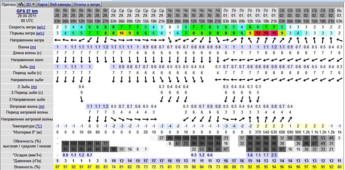 и чё там с погодой?Bazel писал(а):Подскажите пожалуйста, почему у меня в прогнозе windguru не отображается волновой прогноз.