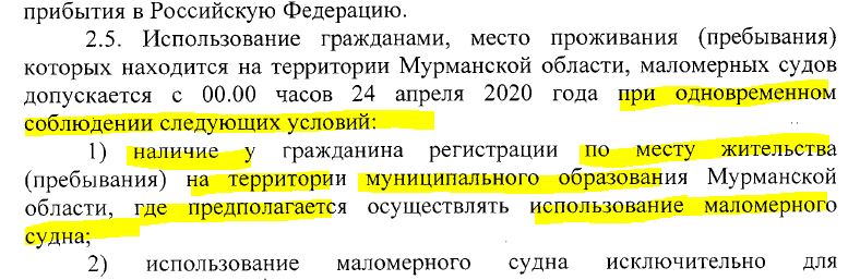 "Наличие у гражданина регистрации по месту жительства на территории муниципального образования Мурманской области, где предполагается осуществлять использование маломерного средства."