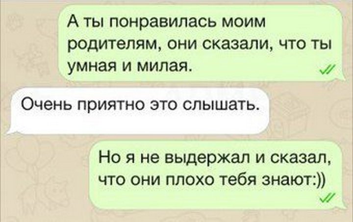 Волхв писал(а):Родители отнеслись к моей девушке как к родной дочке. Сразу стали искать ей нормального парня.