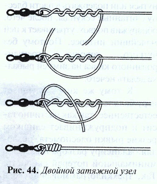 1. Привязать леску к крючку/вертлюгу/кольцу.