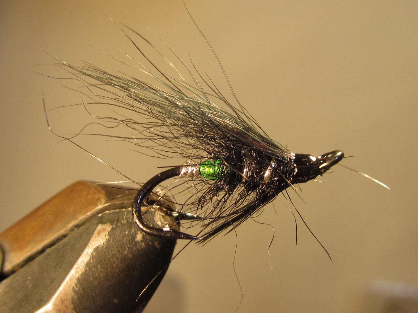 Если отходите от стандартной легенды мушки Грин-Бат (сразу оговорюсь: за стандартную легенду предлагаю рассмотреть дизайн мушки А.Соколова на KS, который проверенно работает хорошо когда… и много где…), то делать это нужно осознанно. Если уходите в тему «жесткого» контраста для пасмурной погоды, то логичнее будет, наверное, тогда золотой люрекс заменить на серебряный. Выглядеть будет феншуёвее + дабл салар (если не ошибаюсь) – для малой воды, возможно, не самый лучший гак… но это уже дело вкуса, условий ловли, стиля проводки и того, что есть «под рукой» в конце-концов…