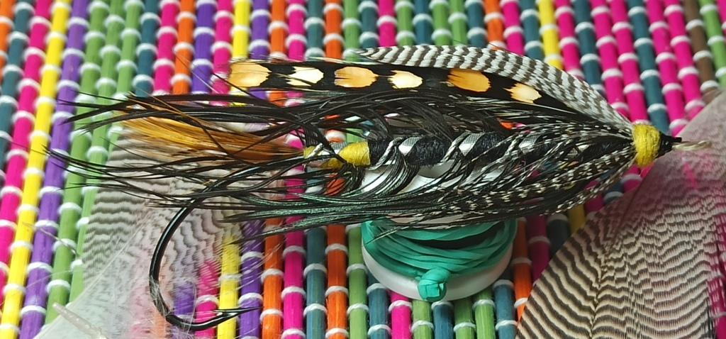 А где blue-eared pheasant? Я вспомнил что видел эту муху и вспомнил что видел там оранжевое или ржавое перо. У вас я его не заметил. По легенде не понял куда его, по телу как цаплю? На картинке толком не понять, но его видно.