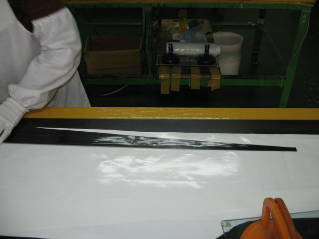 Сам по себе графит – это нить, продаваемая в больших бобинах. В Юго-Восточной Азии он производится только в Японии. Но при производстве спиннингов используются не нить, а графитовое полотно. Оно напоминают рогожку (нити графита переплетены между собой) и пропитано связующим на основе эпоксидной смолы. Далее он кладется на ламинированную бумагу, как обычные наклейки. В таком виде графит и приходит на заводы.