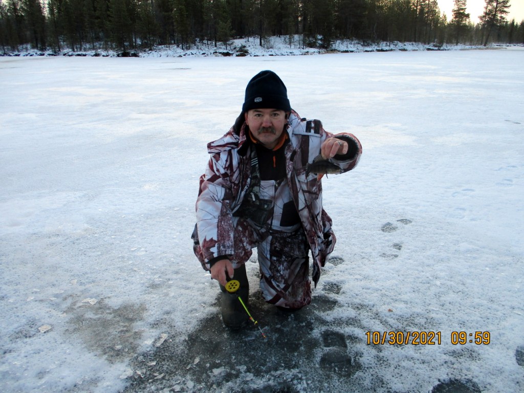 ! Лёд на лесных ламбинах хороший,5-7 см. Поймала одного окуня,только не могу найти в смартфоне