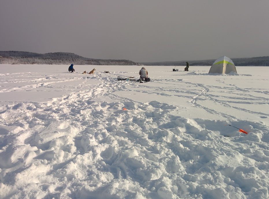 Всегда, везде и всем говорил: - "Надо ехать подальше от могильного!!!" Не зря видать его назвали МОГИЛЬНЫЙ. ЭХ-х-х........ Была не была... Поехали... Пять минут и я на пятаке у ЯБ. Местами ехал боком, местами прямо, местами спидометр показывал 80 км/ч... Короче, Сергей помог поставить палатку, т.к. ветер задувал нипадецки в порывах. Вообще думал, что клевать не будет, но не тут-то было. Пока вычислял глубину, кивок уже начал вытанцовывать джигу... Час непрерывного клева, даже покурить некогда было. Но размерный ряд не радовал. Много мелочи, хотя почти все поклевки результативные. Уверенный клев продолжался до 17-00, потом стал стихать, вместе с ветром кстати. С 18-00 примерно вообще почти прекратился. В последний час поймал может с десяток. Попадались конечно и селедины, но очень мало. 80% корефана было поймано на красный банан в черную полоску. Не скрою, я конечно ждал сига, но он меня так и не порадовал