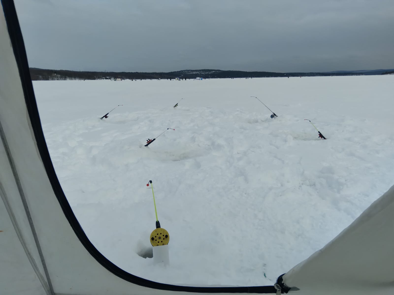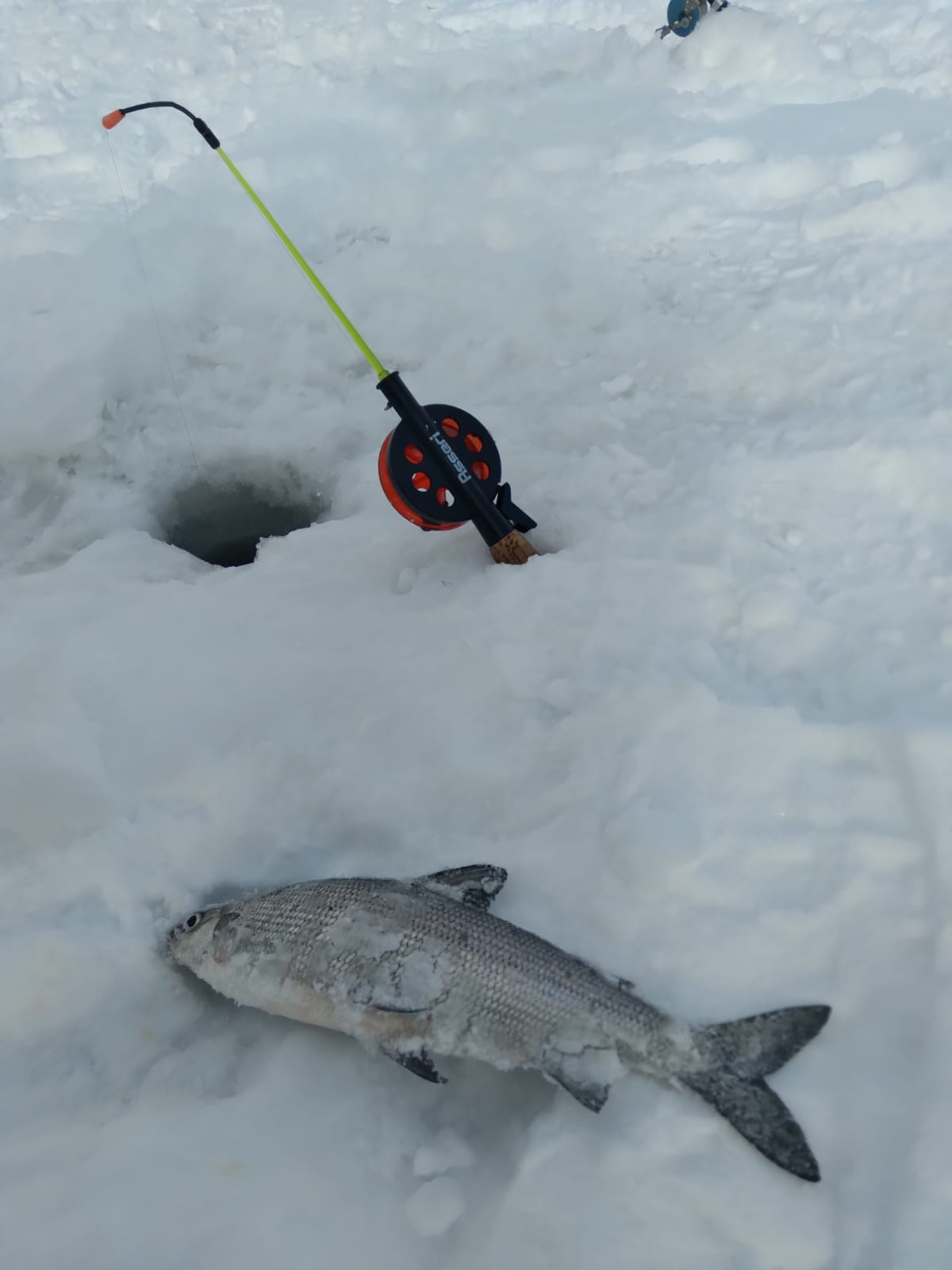 Сегодня добрался до озера где был в крайний раз еще лет наверное в 18-19. И бывал там только летом, каково же было разочарование когда стал бурить лёд. Где не просверлю, хоть 100-150 метров от берега то везде в дно. Хотя в те года ловились окуня по 300-350гр и щук тоже видел в озере. Решил проехать дальше, на следующее. Рыбу там не ловил, но подозревал что она там есть. Стал ставить удочки, Глубина начиналась от 3.5 метров, когда ставил третью удочку, первую стало неистово загибать. В итоге за первый час ловли около 2-х десятков окуней, мог поймать и больше ,но решил ставить жерлицы на щуку, а в это время удочки гремели бомбили. я часть даже выдернул из воды чтобы не нервировали. На одну из жерлиц было две размотки, но так никто так и не засекся, думаю что это был окунь покрупнее. Живчик стоял ну грамм 50 от силы. По итогу как все началось так резко и закончилось. Просидел всего около 5 часов, но в последние 3 часа наверное 3 окуня поднял. В итоге с блесной стал засыпать на лунке , шел с утра плотный снег и ветер всё набирал набирал обороты, решил свернуться и ехать в сторону дома. Не доехал, остановился на избушке одного из соседних озер, растопил печку, просушил штаны. Часа 2 поспал и вот уже после всего полученного кайфа и антуража двинул к дому.