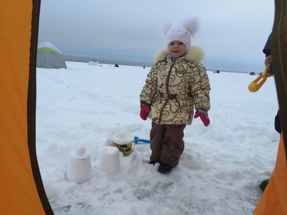 Итог целых 4 корюшки. Немного женского расстройства по поводу улова, но в общем и целом понравилось. Дочь сказала ещё поедет «Рыбу тащить».