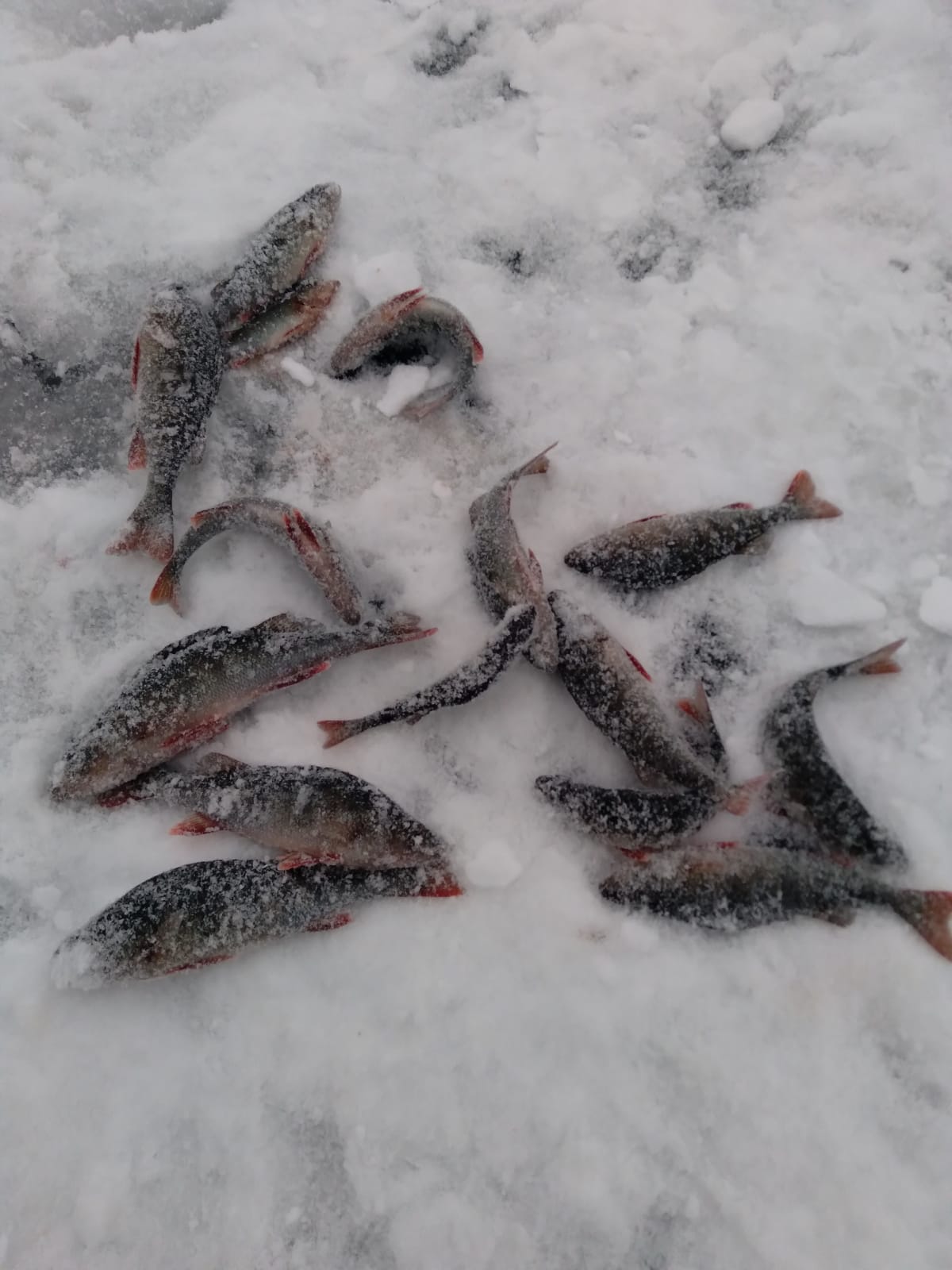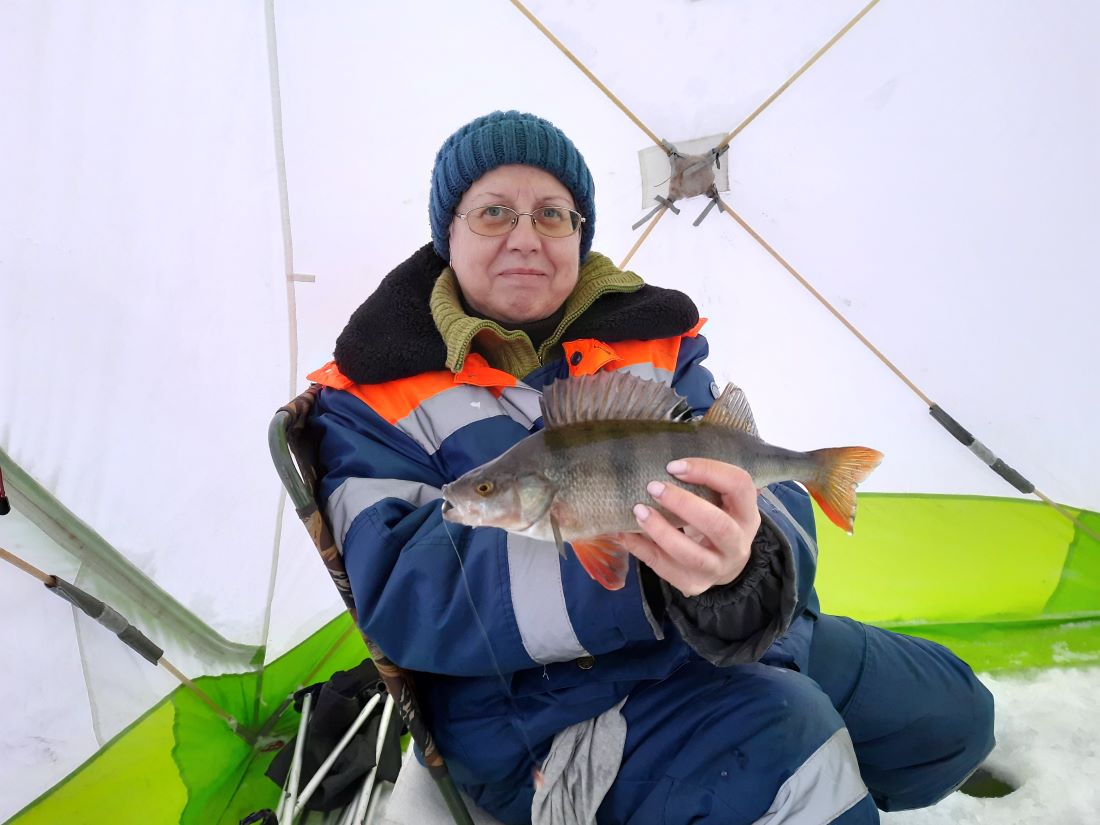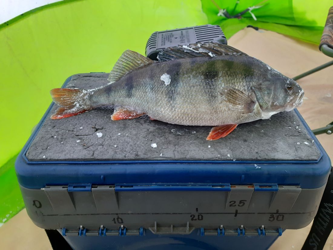 Первый окунь на 520 гр. (со мной на фото) был пойман ещё в конце декабря, второго - на 590 гр. поймали в прошедшее воскресенье.
