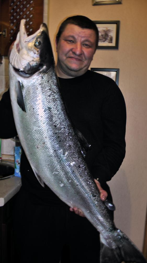 Рыбка прошлогодняя, девочка-осенка, не взвешивал, но по ощущения около 3 кг. Была с икрой, часть недозрелая, часть перезревшая, посолил и съел с удовольствием!Рыбку тоже посолил, конечно не жирная, но бутики сегодня скушал с огромным аппетитом!