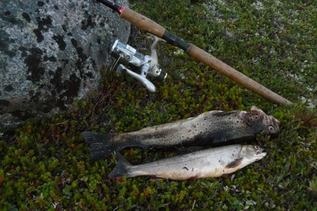 Подвел к берегу - чтой-то цвет не тот отблескивает... выдернул - голец. Размером поменьше первой кумы - но сопротивлялся как