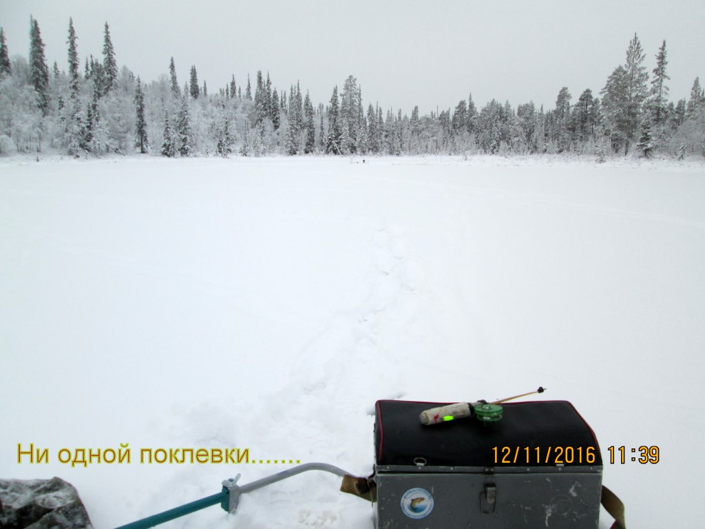 Придорожное озеро по финке. На второе озеро идти поленились, да и следов туда не было, поэтому решили не рисковать. Вспомнили как год назад чавкали все в мыле по незастывшему болоту.![]()