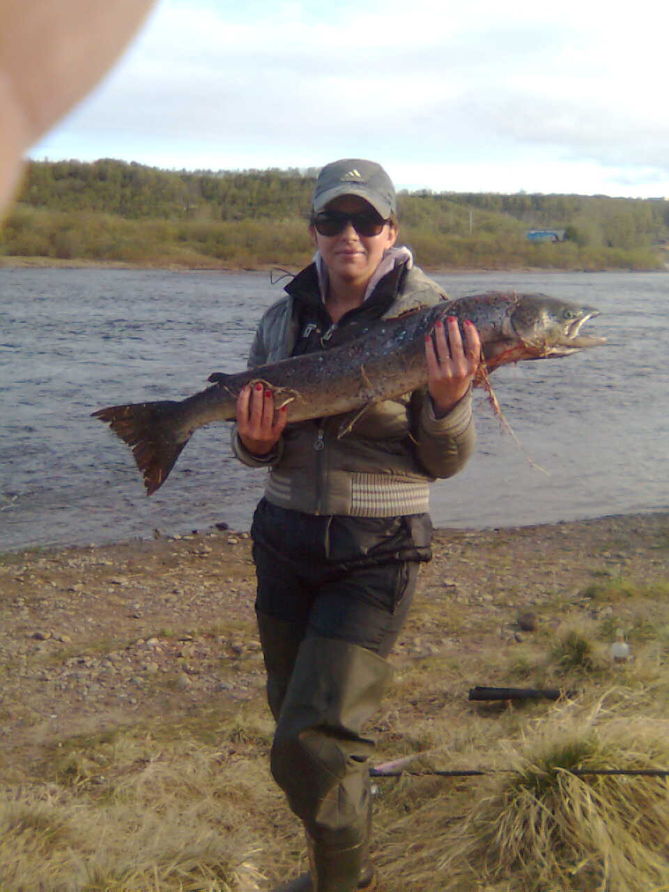 В 6.00 была уже в Шонгуе. Попив чайку собрала спиннинг и пошла ловить удачу!!! Буквально на пятом забросе цапанула семужка-красавица 5 кг, 91 см!!!! Взяла на уралочку 42 гр. Эмоций выше крыши!!!!Первый выезд!!!! Причем ловила на том же месте ( у помойки) где и в прошлый раз улыбнулась удача! На реке было всего 2 человека. На противоположном берегу нахлыстовик 2 рыбины держал, не знаю выловил или нет но шел он со второй далеко и долго. Вот так!!!В пятницу опять прокачусь с утреца. После Шонгуя моя неугомонная душа понеслась в Молочку, людей там было побольше но не у кого клева не было... После двух часов рыбалки плечи конечно потянуло с непривычки после тяжелого спиннинга, ну ничего, пару выездов и войду в форму