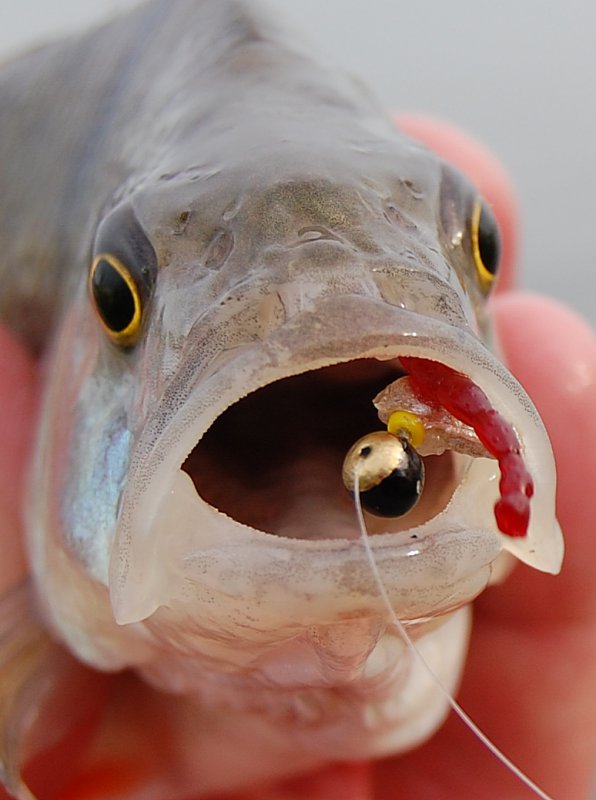 Хоть белую рыбу я и не жалую, небольшим открытием первоначально и более разнообразной по рыбе становилась рыбалка в зоне ловли вечных врагов спиннингистов – фидеристов. Так как они обычно занимают целые метры берега, в перспективных окнах приходилось вставать между ними и даже под их спиннинги ( в местах высоких крутояров) и собирать прибрежную рыбу. Из кормушек фидеров при подмотке вымывались остатки прикорма, и язь с лещем, иногда до 1,5 кг весом, так же ловились на мормышку. Эта рыба тут же отпускалась или чаще раздавалась тут же тем самым фидеристам, и они сразу становились более благосклонными ко мне. Стоя перед ними в воде в забродниках, иногда посещали мысли «почему я не в каске?»- ведь у них при забросе случались осечки, но, слава богу, до прямого контакта не дошло. Так что любителям белой рыбы имеет смысл ловить на мормышку с прикормом.