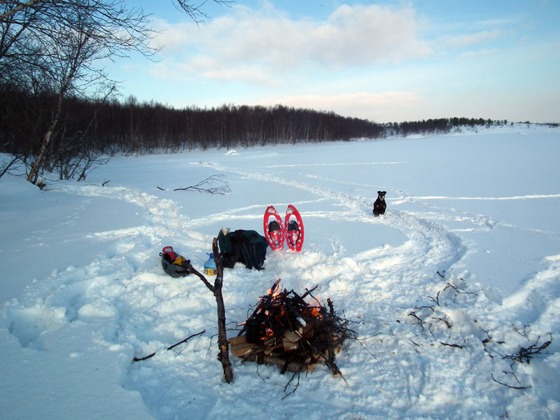 Я только -только выкарабкиваюсь после гриппа, кашель бронхитный задолбал, но я сегодня окрысился и выбрался на Залив для кострового чая из родниковой воды. Очень мудро прихватил с собой снегоступы - снег на литорали оказался скользкий и мелкий, как крахмал. Часа три у меня были танцы с бубнами, самочувствие заметно улучшилось.