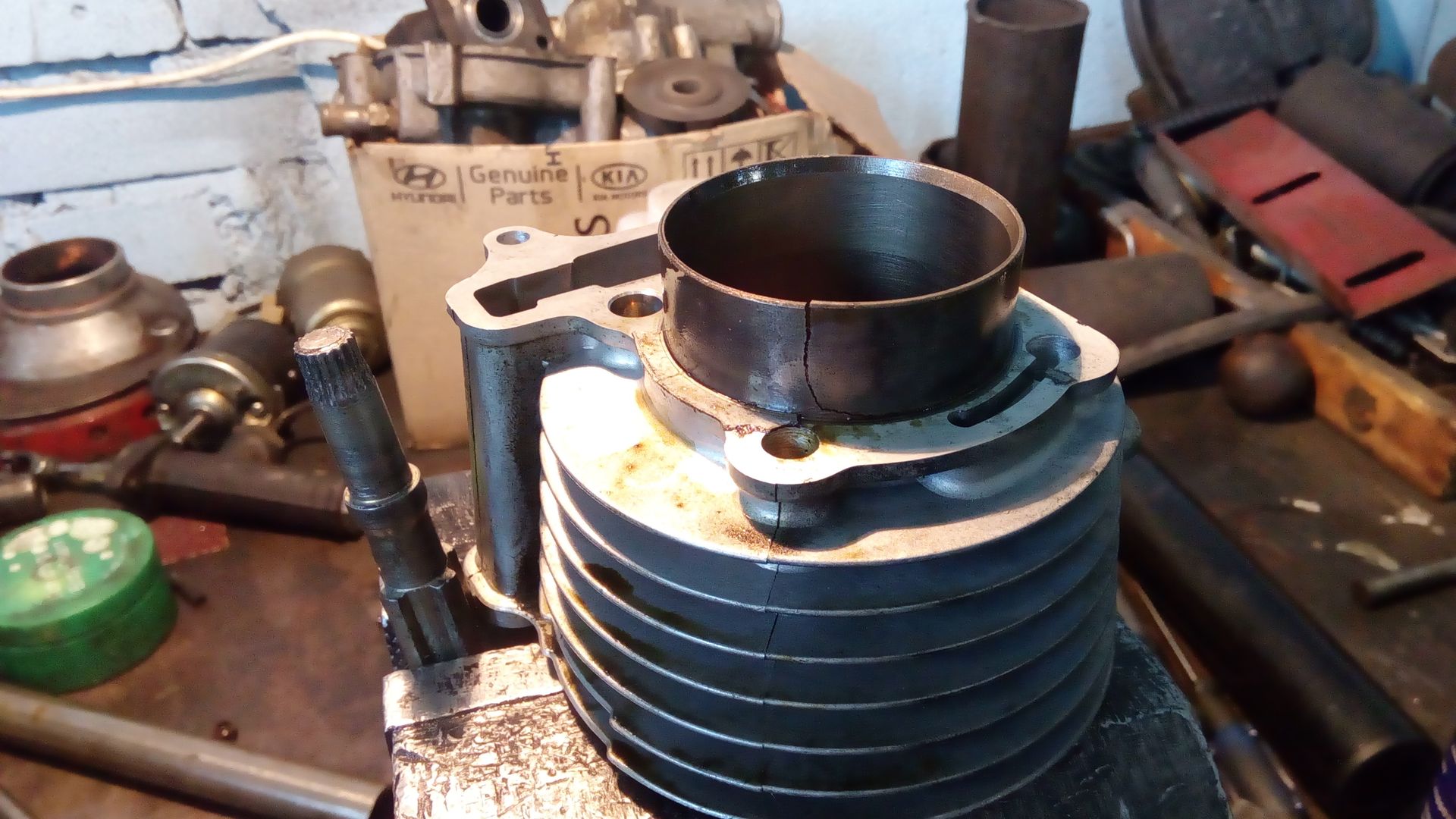 и дингасик мой издав какой-то неприятный звук похожий на "тук" заглох и больше не завелся. Хорошо был не один и недалеко от берега км два всего и от гаража примерно девять. Притащил меня Палыч в гараж, дальнейшая разборка показала вот что...