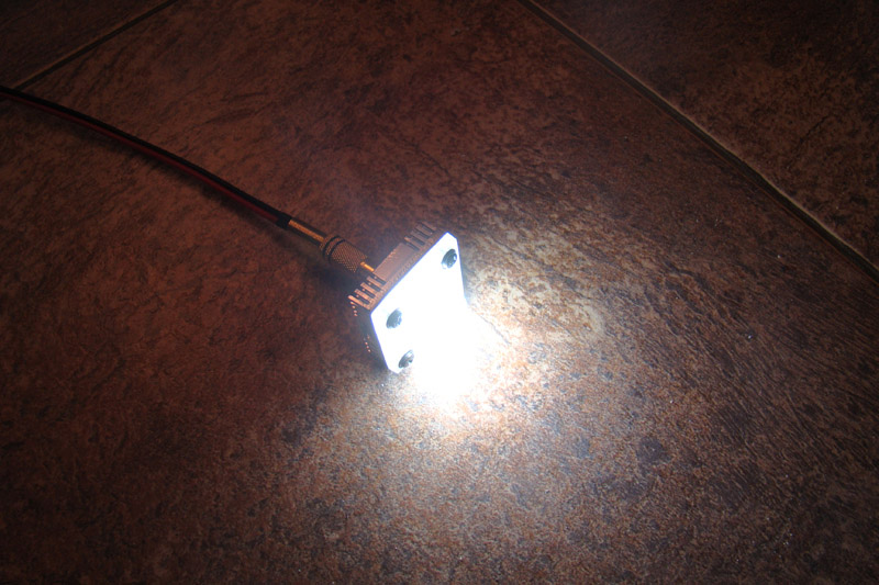 Один фонарь на одном диоде, второй на 3-х включеных последовательно. Вот этот миниатюрный фонарь на 1 диоде, светит так, что в глазах меркнет...Ну это на вскидку, как штук 10 "люстр". Мощность свечения видна на фото...он перебивает вспышку фотоаппарата. Про фонарь с 3-мя диодами, я уже просто промолчу...Для питания этих устройств от 12V и нужен как раз тот самый пресловутый генератор тока. С помощью него, я могу ток задать через диоды любой, тем самым изменяя яркость освещения и экономя АБ (если это надо)