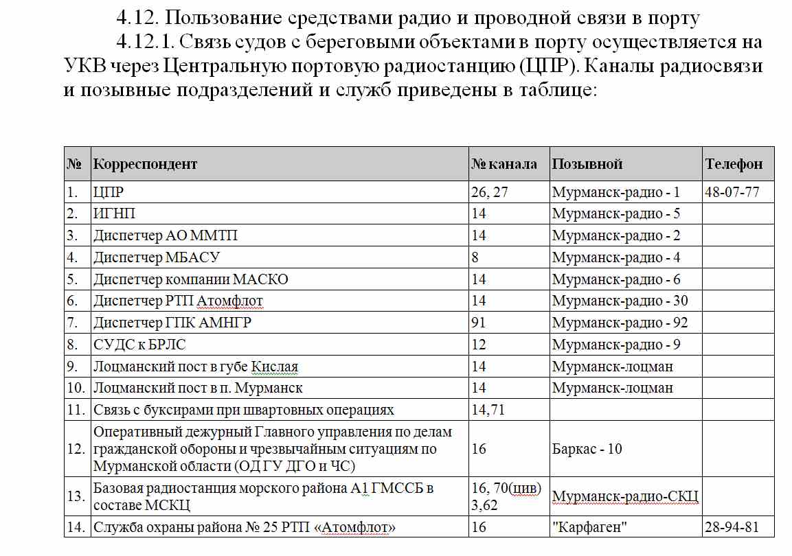 4 x d 156.200 160.800 Общие переговоры (морской оператор), портовые работы, движение судов