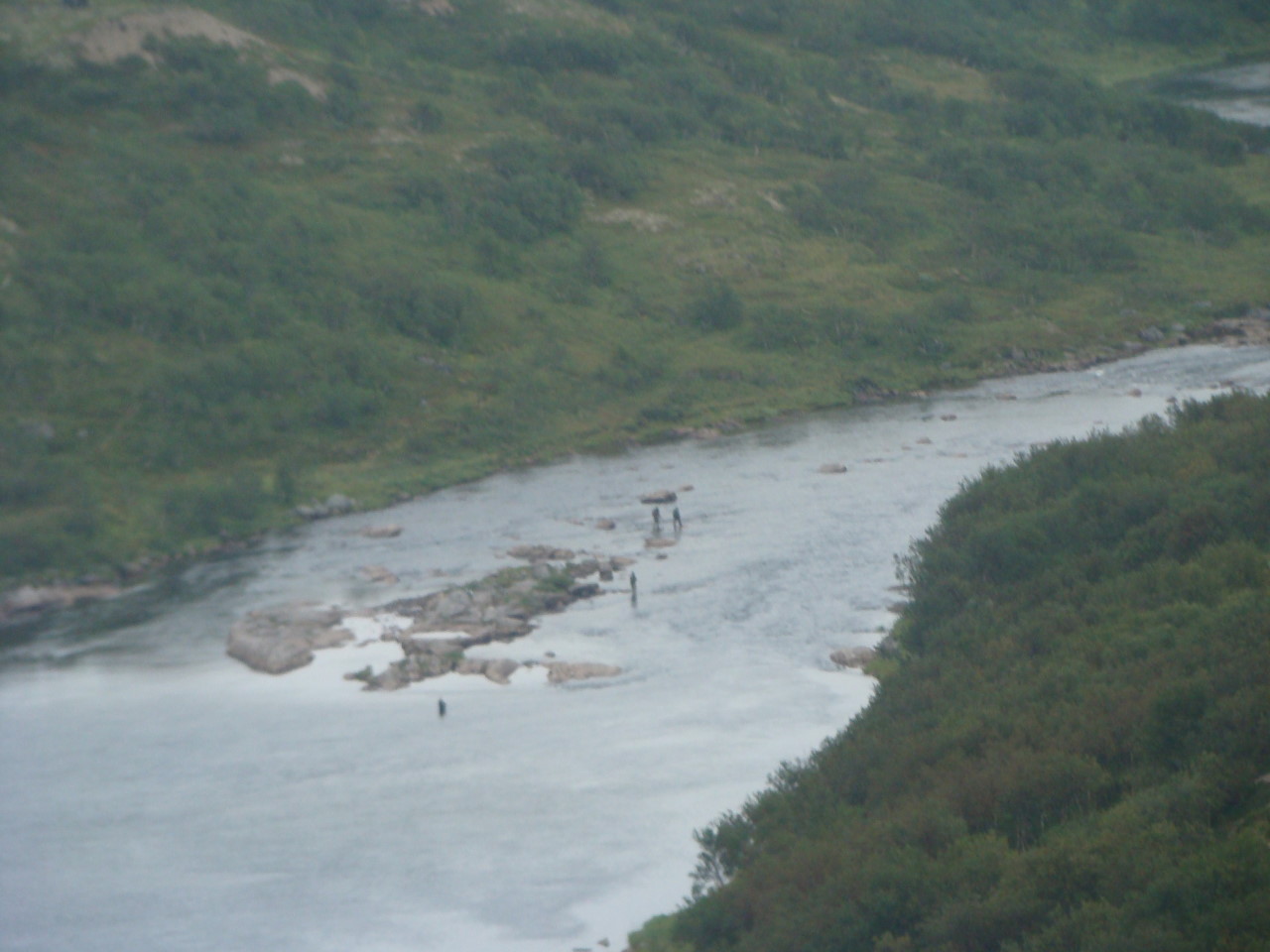 ,как вдруг внизу увидел силуэты людей рыбачащих в реке..........