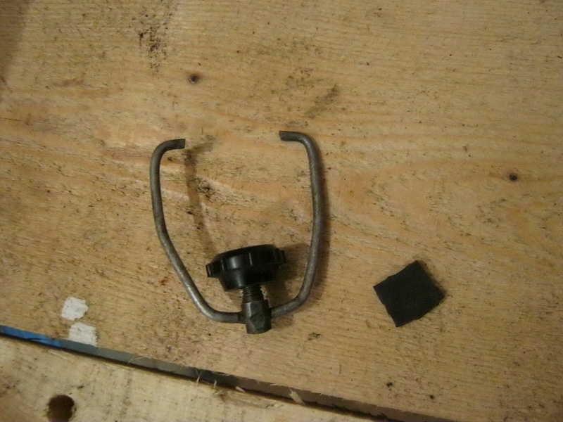 .задумался о ремонте. Вспомнился карбюратор от ПЛМ «Вихрь-30». На нём отстойник крепится скобой и снизу подкручивается гайкой (кто сталкивался, тот поймёт). Покопался в старых запчастях от Вихря и вот она заветная скоба)), да ещё и подошла с подпиливанием упорной гайки
