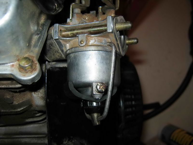 . Подпиливать пришлось для того, чтобы под гайку влезла прокладка из маслостойкой резины. Жиклёр у карбюратора вкручен сбоку, пришлось развалившееся место, куда вкручивался родной болт отстойника заделать холодной сваркой, чтоб бензин поступал через жиклёр. Сутки на твердение холодной сварки, собираю карбюратор со скобой от Вихря, устанавливаю, завожу…Дрын, дрын…завёлся…и вот оно счастье