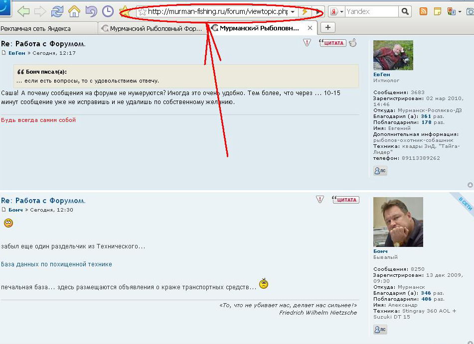 ЕвГен писал(а):Такая ... затыка: если раньше я в Росляково не мог почему-то выйти в Форум по субботам, то в прошедшие выходные не было доступа и в воскресенье. В адресной строке бесконечно крутится ... "шарманка" под названием "соединение". Мурманский охотничий Форум отзывается сразу же. Отчего и почему?