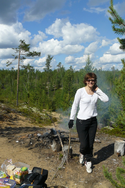 Может, из-за ветра, который гнал волну прямо в губу...На обратном пути подгрёб к острову передохнуть. Перекурил, огляделся... За островом затишье, метрах в двадцати небольшой островок, несколько валунов торчат, но глубинка есть... Интересно! У меня стояла бомбарда, покидал мух... упс. Беру палочку жены, цепляю двоечку блэк фури с желтыми точками... Заброс... второй... третий... ЕСТЬ! И хороший