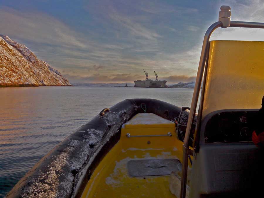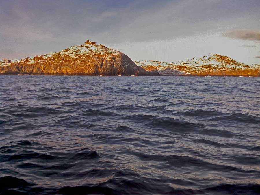 Снасть ложится почти горизонтально, весь шнур уже ушел в воду, а грунта что то не видать... Глядя на мои успехи, Сашка цепляет свою самую тяжелую железяку. 180 метров, рыбы нет. Навигатор прщуривает глаза на солнце. Мы не зговариваясь выбираем снасти и Сашка запускает движок. Терять уже нечего... Лодка скачет по волнам в темпе ,, позвоночник осыпался в трусы,, мы вылетаем к Погани. Сашка берёт мористее, лодка едва успевает остановиться, как он забрасывает свою гирю за борт. 220 метров. Сашка упрямо рвёт удилище раз за разом. НОЛЬ. Что дальше? Меня начинает загибать. Пробивает на зевоту, очень хочется спать.. Накат до 3 метров. Я с комфортом заваливаюсь в мокрый снег палубы, ногами в стамп, приладившись головой на носовой рундук. Сознание медленно меня покидает. Комок проскочил горло и вышиб головной мозг. В голове лёгкий звон и фарш из мозгов... Сашка зеленея с лица вежливо интересуется - Блевать будешь? Я проваливаюсь в сон, как медведь в берлогу... Сашка пинает мою ногу - Пошли в Лодейку, отстоимся немного.. Минутный сон принёс облегчение, я могу поднять голову. Сашка уже никакой. Ему тяжелее в сто раз, он не может ляпнуться на спину и всё бросить. Ветер усиливается, накат становится ещё жестче. Я изображаю руками полное согласие с доктриной Навигатора. Уже у Пушки мы немного приходим в себя, тут не так шкивает. Сашка пытается удержать внутри организма сьеденную колбаску. Я умываюсь забортной водой. За весь экстрим поймано 4 рыбины.. Чё? - Вопрос Сашки не вызывает никаких сомнений, ведь сказано же, что с Сети бежать домой ближе... - Пошли отсюда нах.., пока такая шара существует...