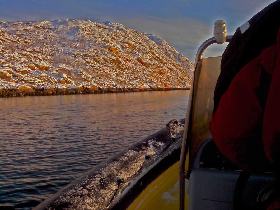 Снасть ложится почти горизонтально, весь шнур уже ушел в воду, а грунта что то не видать... Глядя на мои успехи, Сашка цепляет свою самую тяжелую железяку. 180 метров, рыбы нет. Навигатор прщуривает глаза на солнце. Мы не зговариваясь выбираем снасти и Сашка запускает движок. Терять уже нечего... Лодка скачет по волнам в темпе ,, позвоночник осыпался в трусы,, мы вылетаем к Погани. Сашка берёт мористее, лодка едва успевает остановиться, как он забрасывает свою гирю за борт. 220 метров. Сашка упрямо рвёт удилище раз за разом. НОЛЬ. Что дальше? Меня начинает загибать. Пробивает на зевоту, очень хочется спать.. Накат до 3 метров. Я с комфортом заваливаюсь в мокрый снег палубы, ногами в стамп, приладившись головой на носовой рундук. Сознание медленно меня покидает. Комок проскочил горло и вышиб головной мозг. В голове лёгкий звон и фарш из мозгов... Сашка зеленея с лица вежливо интересуется - Блевать будешь? Я проваливаюсь в сон, как медведь в берлогу... Сашка пинает мою ногу - Пошли в Лодейку, отстоимся немного.. Минутный сон принёс облегчение, я могу поднять голову. Сашка уже никакой. Ему тяжелее в сто раз, он не может ляпнуться на спину и всё бросить. Ветер усиливается, накат становится ещё жестче. Я изображаю руками полное согласие с доктриной Навигатора. Уже у Пушки мы немного приходим в себя, тут не так шкивает. Сашка пытается удержать внутри организма сьеденную колбаску. Я умываюсь забортной водой. За весь экстрим поймано 4 рыбины.. Чё? - Вопрос Сашки не вызывает никаких сомнений, ведь сказано же, что с Сети бежать домой ближе... - Пошли отсюда нах.., пока такая шара существует...