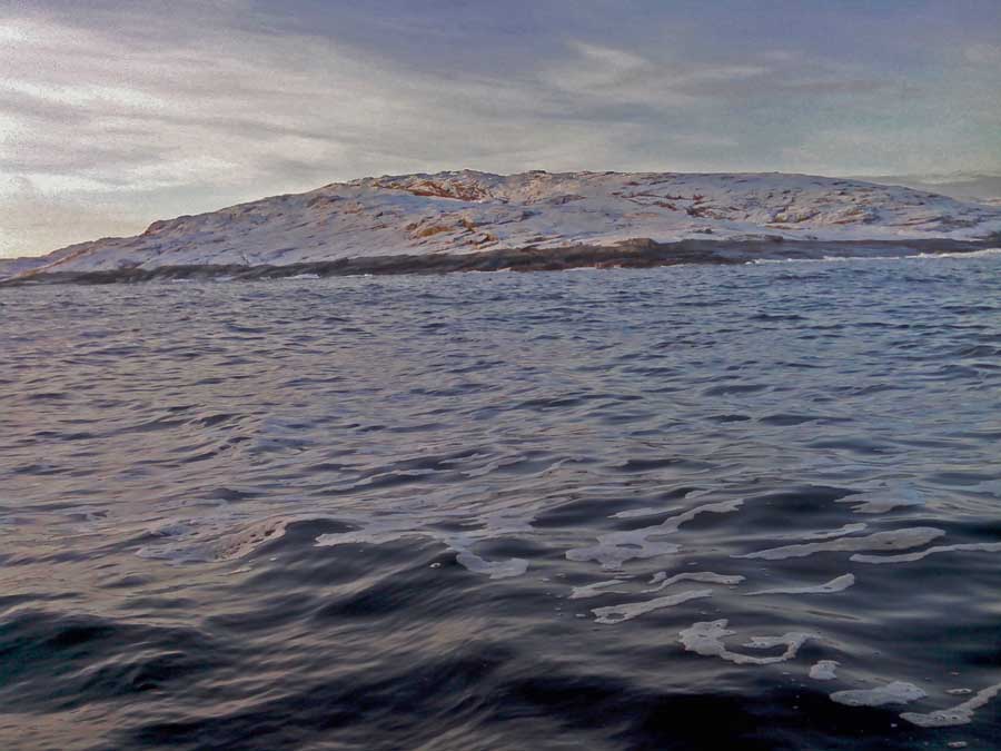 Снасть ложится почти горизонтально, весь шнур уже ушел в воду, а грунта что то не видать... Глядя на мои успехи, Сашка цепляет свою самую тяжелую железяку. 180 метров, рыбы нет. Навигатор прщуривает глаза на солнце. Мы не зговариваясь выбираем снасти и Сашка запускает движок. Терять уже нечего... Лодка скачет по волнам в темпе ,, позвоночник осыпался в трусы,, мы вылетаем к Погани. Сашка берёт мористее, лодка едва успевает остановиться, как он забрасывает свою гирю за борт. 220 метров. Сашка упрямо рвёт удилище раз за разом. НОЛЬ. Что дальше? Меня начинает загибать. Пробивает на зевоту, очень хочется спать.. Накат до 3 метров. Я с комфортом заваливаюсь в мокрый снег палубы, ногами в стамп, приладившись головой на носовой рундук. Сознание медленно меня покидает. Комок проскочил горло и вышиб головной мозг. В голове лёгкий звон и фарш из мозгов... Сашка зеленея с лица вежливо интересуется - Блевать будешь? Я проваливаюсь в сон, как медведь в берлогу... Сашка пинает мою ногу - Пошли в Лодейку, отстоимся немного.. Минутный сон принёс облегчение, я могу поднять голову. Сашка уже никакой. Ему тяжелее в сто раз, он не может ляпнуться на спину и всё бросить. Ветер усиливается, накат становится ещё жестче. Я изображаю руками полное согласие с доктриной Навигатора. Уже у Пушки мы немного приходим в себя, тут не так шкивает. Сашка пытается удержать внутри организма сьеденную колбаску. Я умываюсь забортной водой. За весь экстрим поймано 4 рыбины.. Чё? - Вопрос Сашки не вызывает никаких сомнений, ведь сказано же, что с Сети бежать домой ближе... - Пошли отсюда нах.., пока такая шара существует...
