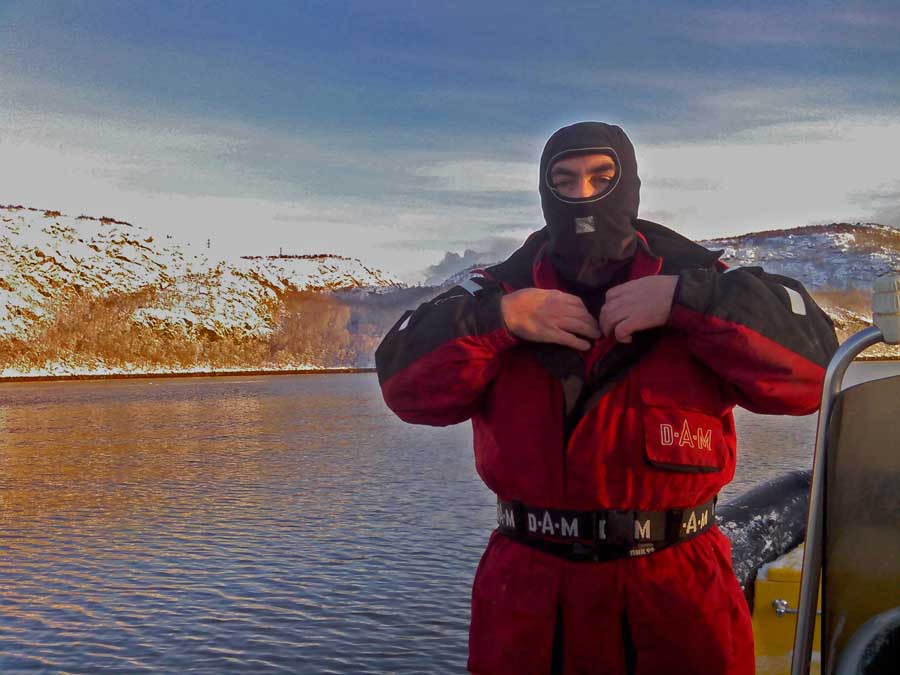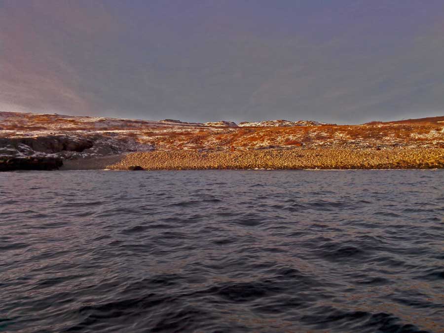 Снасть ложится почти горизонтально, весь шнур уже ушел в воду, а грунта что то не видать... Глядя на мои успехи, Сашка цепляет свою самую тяжелую железяку. 180 метров, рыбы нет. Навигатор прщуривает глаза на солнце. Мы не зговариваясь выбираем снасти и Сашка запускает движок. Терять уже нечего... Лодка скачет по волнам в темпе ,, позвоночник осыпался в трусы,, мы вылетаем к Погани. Сашка берёт мористее, лодка едва успевает остановиться, как он забрасывает свою гирю за борт. 220 метров. Сашка упрямо рвёт удилище раз за разом. НОЛЬ. Что дальше? Меня начинает загибать. Пробивает на зевоту, очень хочется спать.. Накат до 3 метров. Я с комфортом заваливаюсь в мокрый снег палубы, ногами в стамп, приладившись головой на носовой рундук. Сознание медленно меня покидает. Комок проскочил горло и вышиб головной мозг. В голове лёгкий звон и фарш из мозгов... Сашка зеленея с лица вежливо интересуется - Блевать будешь? Я проваливаюсь в сон, как медведь в берлогу... Сашка пинает мою ногу - Пошли в Лодейку, отстоимся немного.. Минутный сон принёс облегчение, я могу поднять голову. Сашка уже никакой. Ему тяжелее в сто раз, он не может ляпнуться на спину и всё бросить. Ветер усиливается, накат становится ещё жестче. Я изображаю руками полное согласие с доктриной Навигатора. Уже у Пушки мы немного приходим в себя, тут не так шкивает. Сашка пытается удержать внутри организма сьеденную колбаску. Я умываюсь забортной водой. За весь экстрим поймано 4 рыбины.. Чё? - Вопрос Сашки не вызывает никаких сомнений, ведь сказано же, что с Сети бежать домой ближе... - Пошли отсюда нах.., пока такая шара существует...