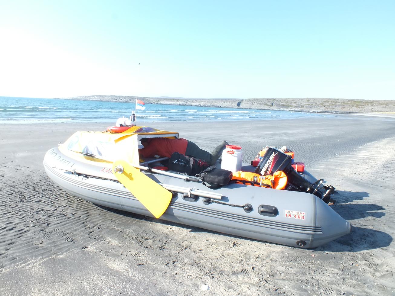 25 июля - день первый. Время 4 утра. Намаявшись за вчерашний день, мы явно проспали. Грузим лодку, моторчик и часть бензина. Сильно не укладываем, слип не далеко, проще лишний раз смотаться. Супруга остается на берегу, я еду за второй партией, а потом за третьей. Через полтора часа, разноцветная куча нашего хозяйства, весом около 600кг. аккуратно сложена у воды, Патриот – рядом. Это была первая наша ошибка, вода стремительно идёт на подъем и через пару часов от нашего автомобиля осталась бы только торчащая антенна. Часть кидаем обратно в машину, но всё понятно не влезает, и мы короткими перебежками спасаем самое ценное, перемещая его вверх по склону. УАЗ уже по ступицы, пониженная не помогает, и тяжелый внедорожник вязнет в мокрой гальке… лебедка, снятая накануне отъезда, мирно покоилась на полке в гараже. Канистры с бензином выбрасываем из авто, теперь уже в воду, следом упаковку с лодкой, сейчас важно спасти машину. Патриот, лишившись трех сотен кг, с трудом, но вылезает на бугор. Ловим разбредающиеся по гавани канистры и вытягиваем утонувшую упаковку,