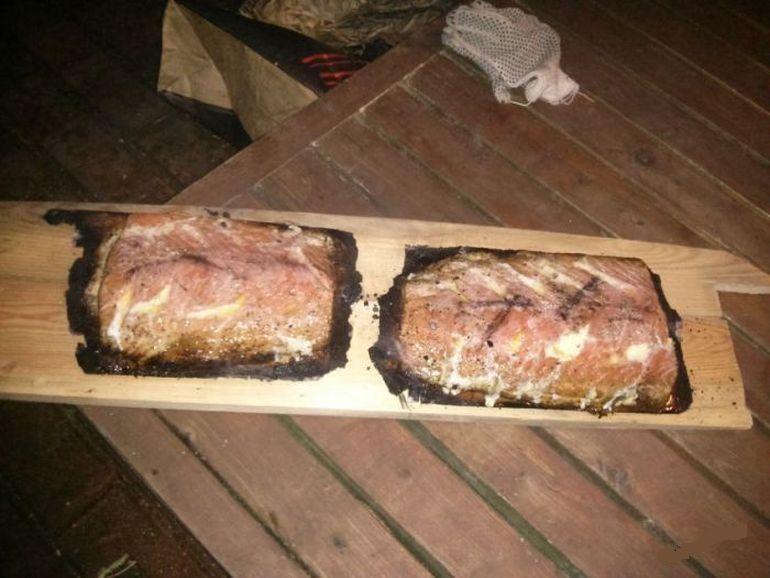 Для приготовления нам нужно 2 килограмма форели (обязательно со шкурой) и 2 специальные дощечки (это и есть "ингредиент"), изготовленные из экологически чистого канадского кедра (именно кедра - он даёт неповторимый аромат дыма и не выделяет никаких смол).